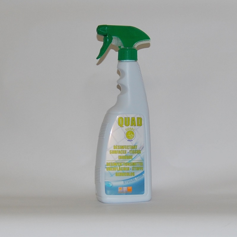 QUAD est une concentration élevée de sels d’ammonium quaternaire capable de nettoyer et d’assainir diverses surfaces. Il ne contient PAS de substances agressives. IL NETTOIE ET ASSAINIT SANS RINÇAGE.
