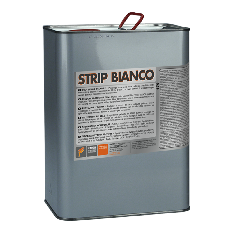 Conditionnements disponibles 5 l. Les indications de la présente fiche technique se basent sur les caractéristiques et potentialités d’utilisation dont nous avons connaissance. En général, il n’est cependant pas possible de déduire de ces données, une quelconque obligation ou responsabilité légale. AVANTAGES PELABLE – Peut facilement être retiré. EXCELLENT RENDEMENT – 5m²/l PROTECTION – 10 microns de film élastique résistant aux abrasions BLANC – Excellente visibilité SIÈGE SOCIAL Via Domenico Scarlatti, 26 20124 Milano Bureaux commerciaux et Établissement Corso Europa, 91 – 20020 Solaro (MI) info@farmicol.com Customer Service 02 84505409 www.faren.com Résine liquide de protection, applicable comme un vernis quelconque, qui peut être retiré en enlevant le film. COMMENT • S’applique avec un pistolet à réservoir, au pinceau ou au rouleau. • S’utilise tel quels, même si au besoin il peut être dilué à 10{0a7bcf847b426d7c5d95ba7c15aba1d66a397fa6e4c0acb8251ceaa9be55bf73} avec de l’acétone. • Bien agiter le bidon avant de prélever le produit. • Il est toujours conseillé d’appliquer deux couches. Remarques : Si appliqué sur des superficies vernies, toujours vérifier qu’il peut être retiré. En fait si le produit devait “dissoudre” le vernis de fond, il ne sera plus possible de le retirer. MENUISERIES Protéger les menuiseries en aluminium ou bois pendant la pose. TRANSPORT Protège les pièces mécaniques de charpenterie pendant le transport sur route ou maritime. FOURS SÉCHOIRS/CABINES DE VERNISSAGE À VOILE D’EAU CARROSSERIES